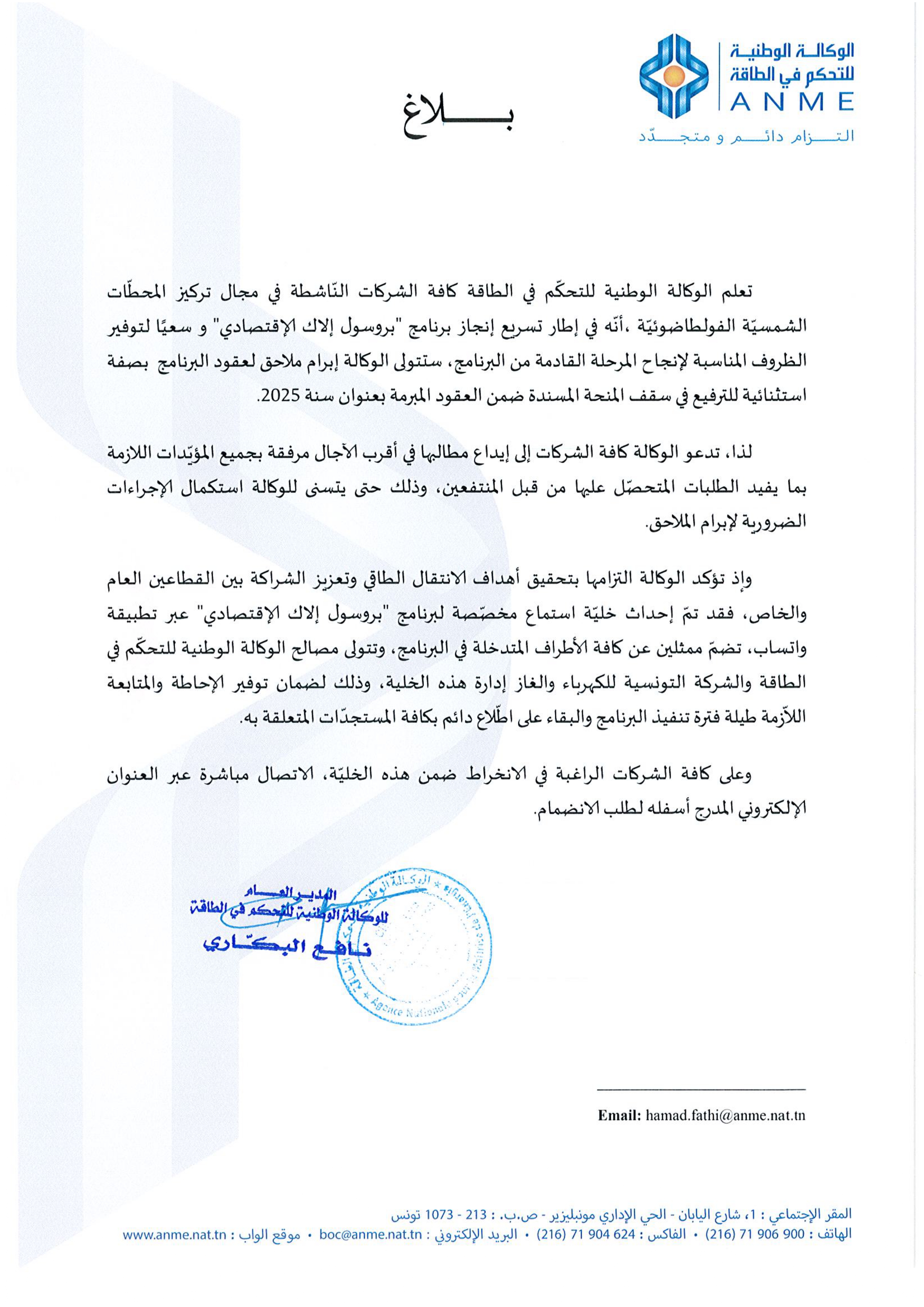 الوكالة الوطنية لإدارة الطاقة لمشاريع الإنتاج الذاتي اعتبارًا من 10/12/2025