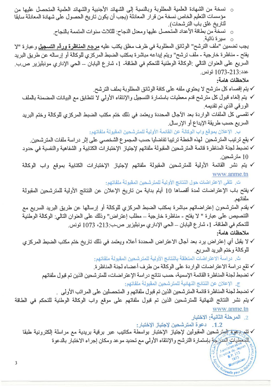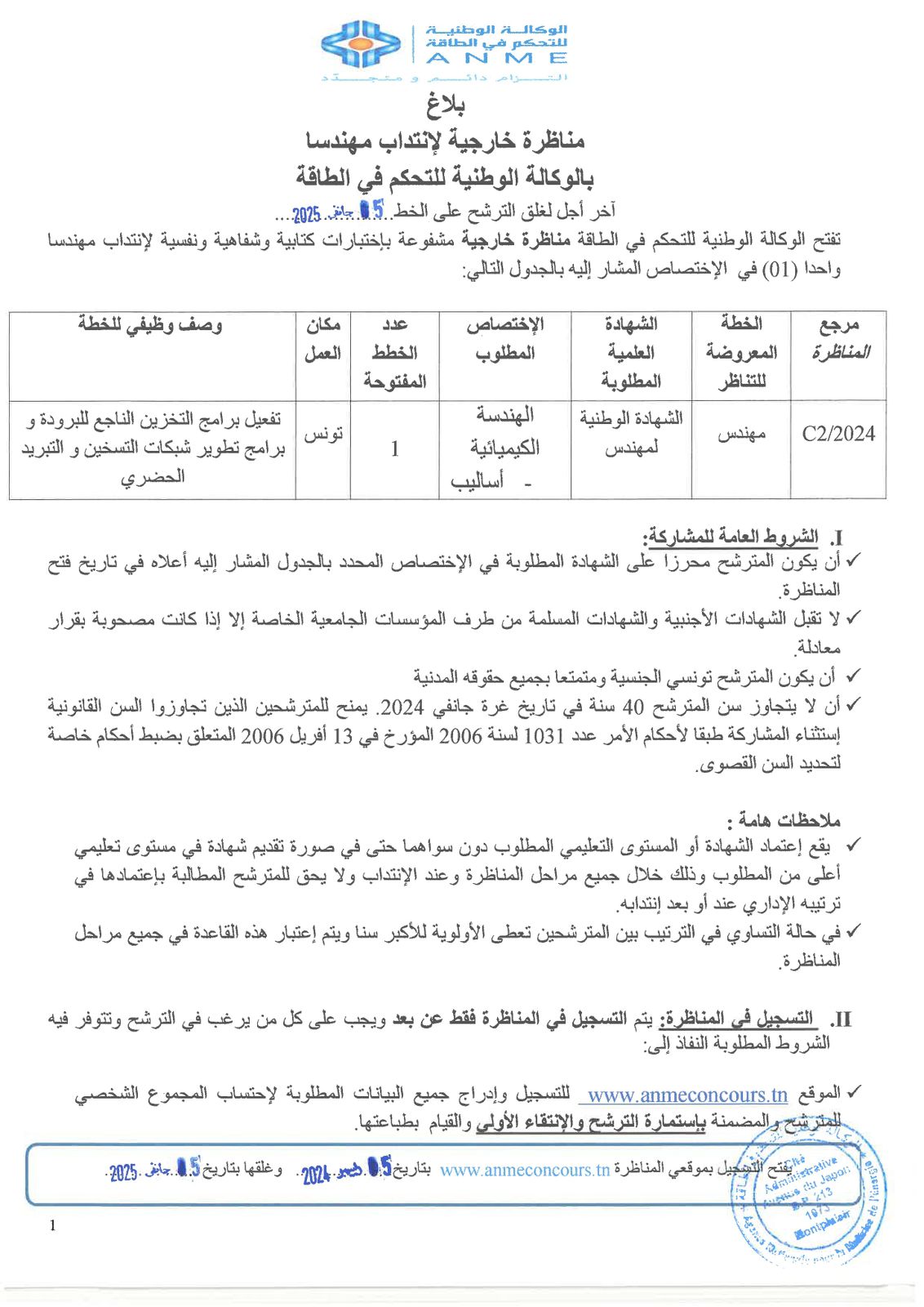 بـلاغ : مناظرة خارجية لإنتداب مهندس بالوكالة الوطنية للتحكم في الطاقة