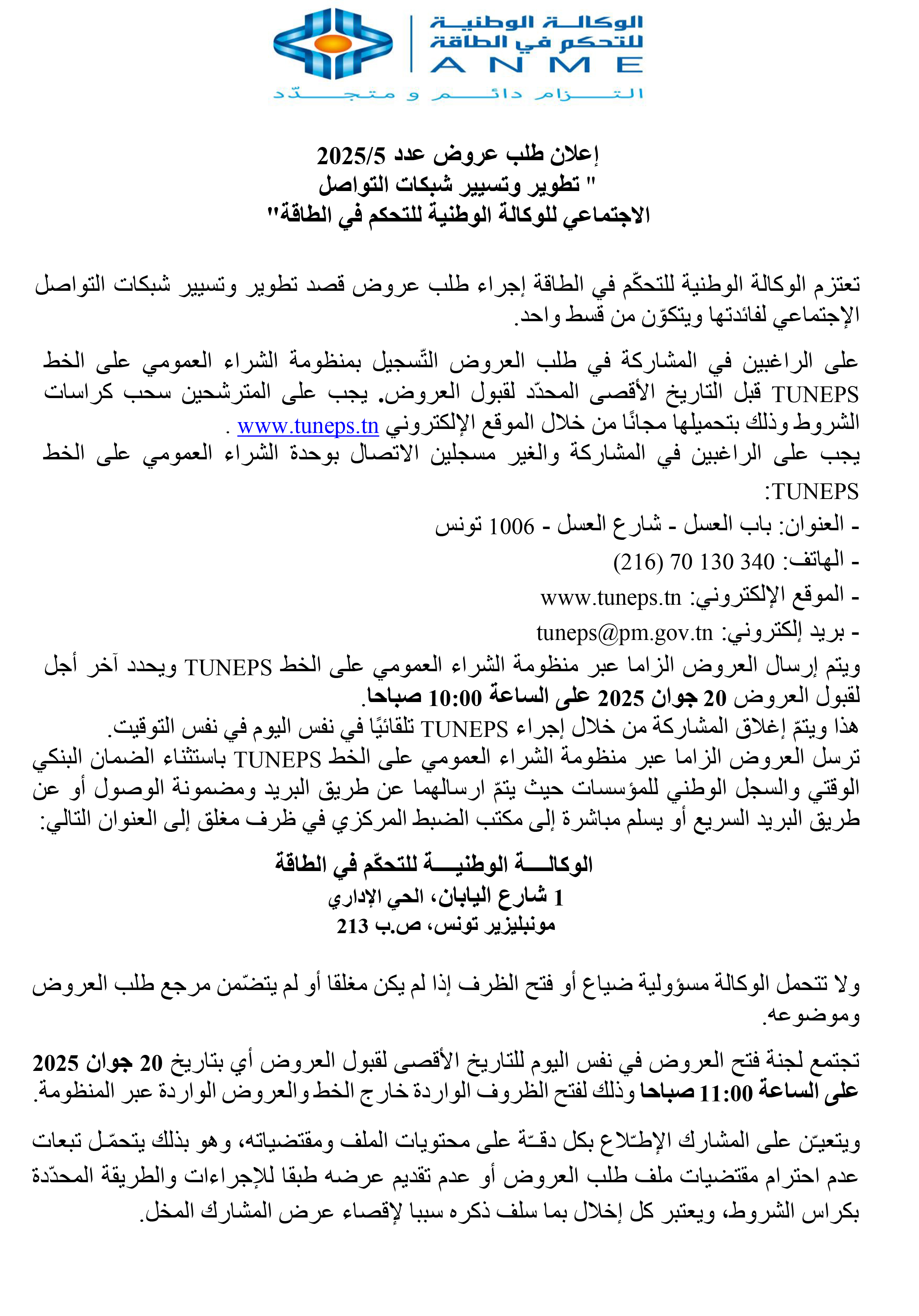 CALL FOR TENDERS No. 5/2025 Development and Management of Social Media Networks