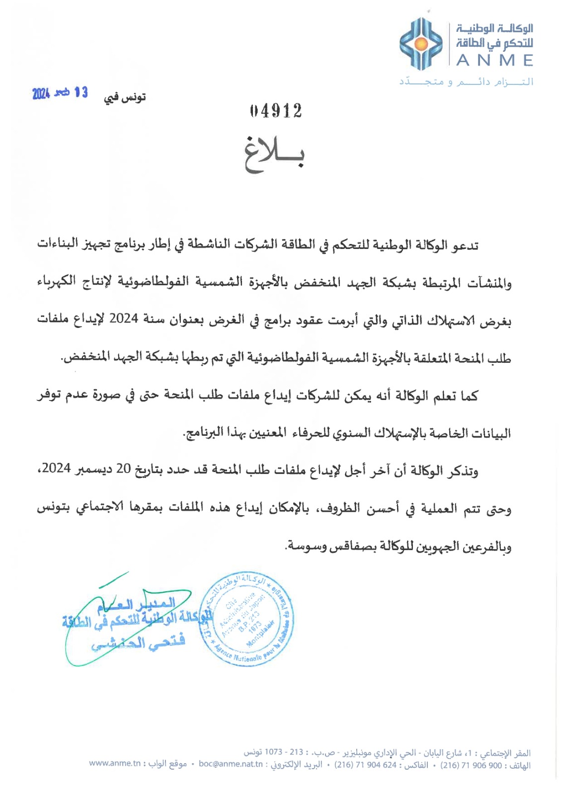 Notice to Companies Operating under the Program for Equipping Buildings and Infrastructure Related to the Low-Voltage Network with Photovoltaic Systems for the Production of Electricity for Self-Consumption