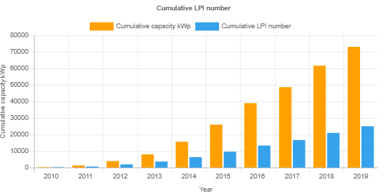 At the end of 2019, as a result of the PROSOL ELEC programme, nearly 3,400 households had been fitted with photovoltaic panels, achieving a total installed capacity of around 11,298kWp.